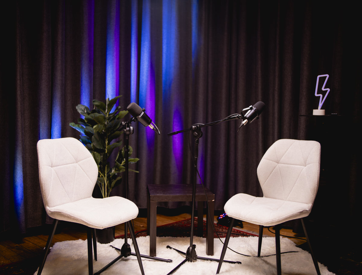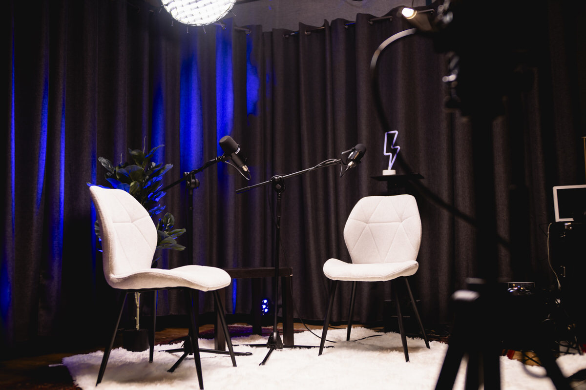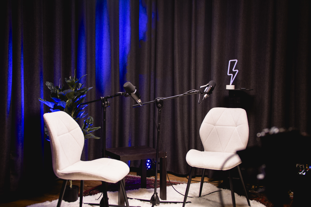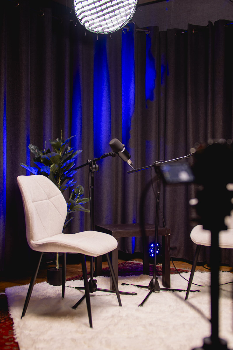 Nos encargamos de la grabación profesional de tu podcast, el set, iluminación y audio. Todo listo para tu creatividad.