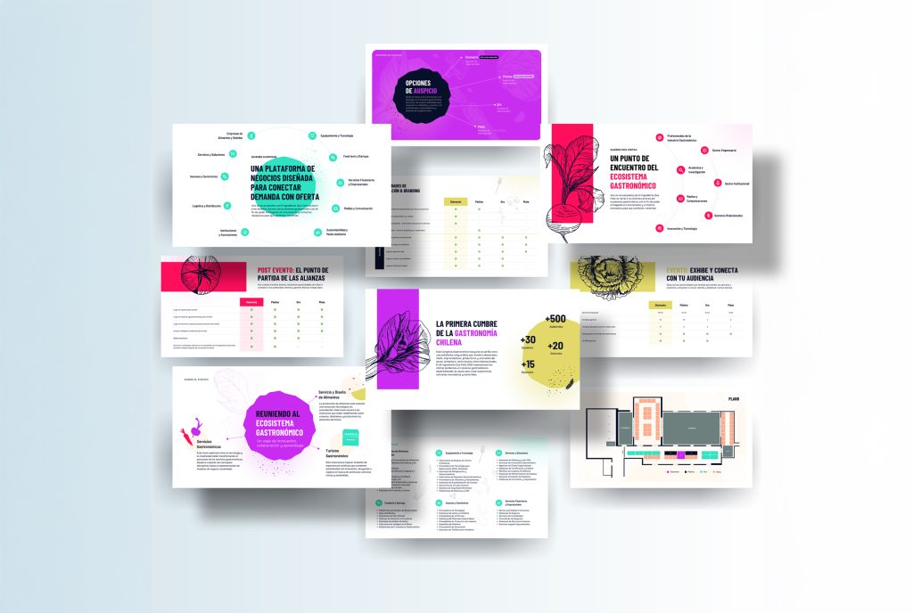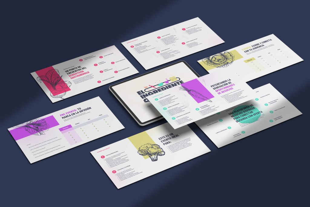 Diseño y diagramación de un brochure comercial para el evento gastronómico «El Ingrediente Que Falta», que está pensado para reuniones con potenciales clientes y que contiene la información clave para quienes quieren invertir como sponsors en este evento. Aquí generamos los assets gráficos, la marca y la diagramación del contenido desde cero.